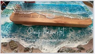 Doug Illman Art and Rocky Mountain Murals are located in Sooke British Columbia, Canada on Beautiful Vancouver Island. Doug was born in London Ontario and comes from a family of artists so art is in his blood. He studied Commercial and Fine Arts at Fanshawe College in London and proceeded to start his business of Colour Consulting and Home Decorating. Doug has placed canvases internationally and domestically all focusing on photo realism. His focus today is High Quality RESIN WAVESCAPES on Charcuterie and Cheese Boards. Over 35 years in the Murals/ResinArt & Home Decor Business Doug has over 700 art projects in the Kelowna BC area alone and now enjoying working in Sooke and Island